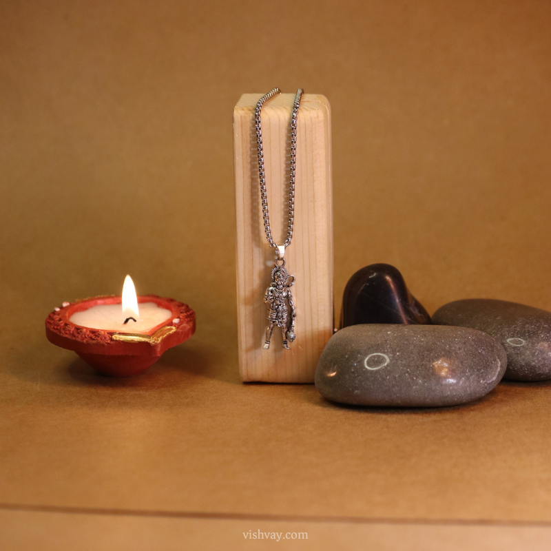 - This stunning pendant captures Lord Hanuman holding his gada in a heroic stance, representing courage, loyalty, and protection. It's perfect for anyone who wants to carry the blessings of Lord Hanuman wherever they go.