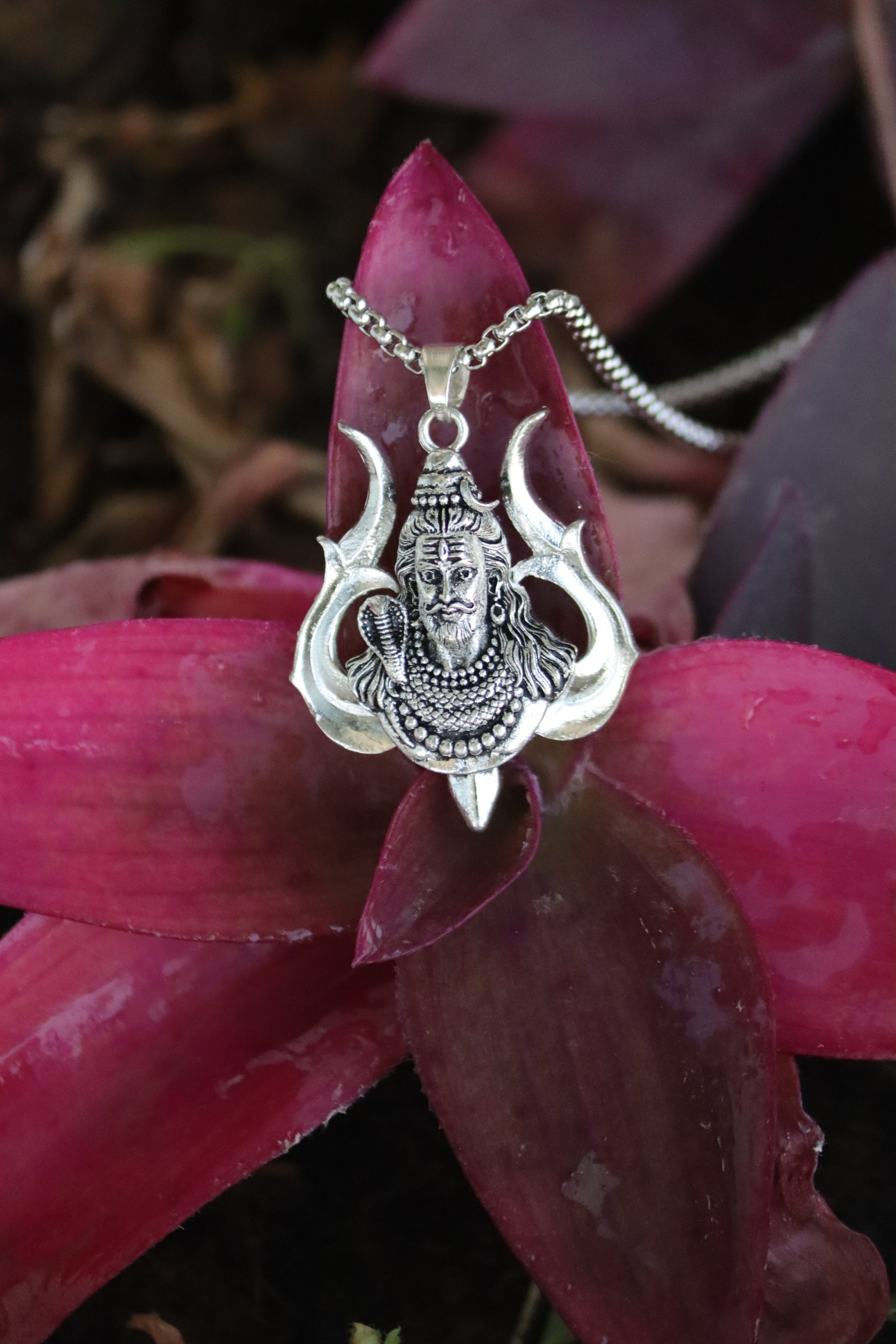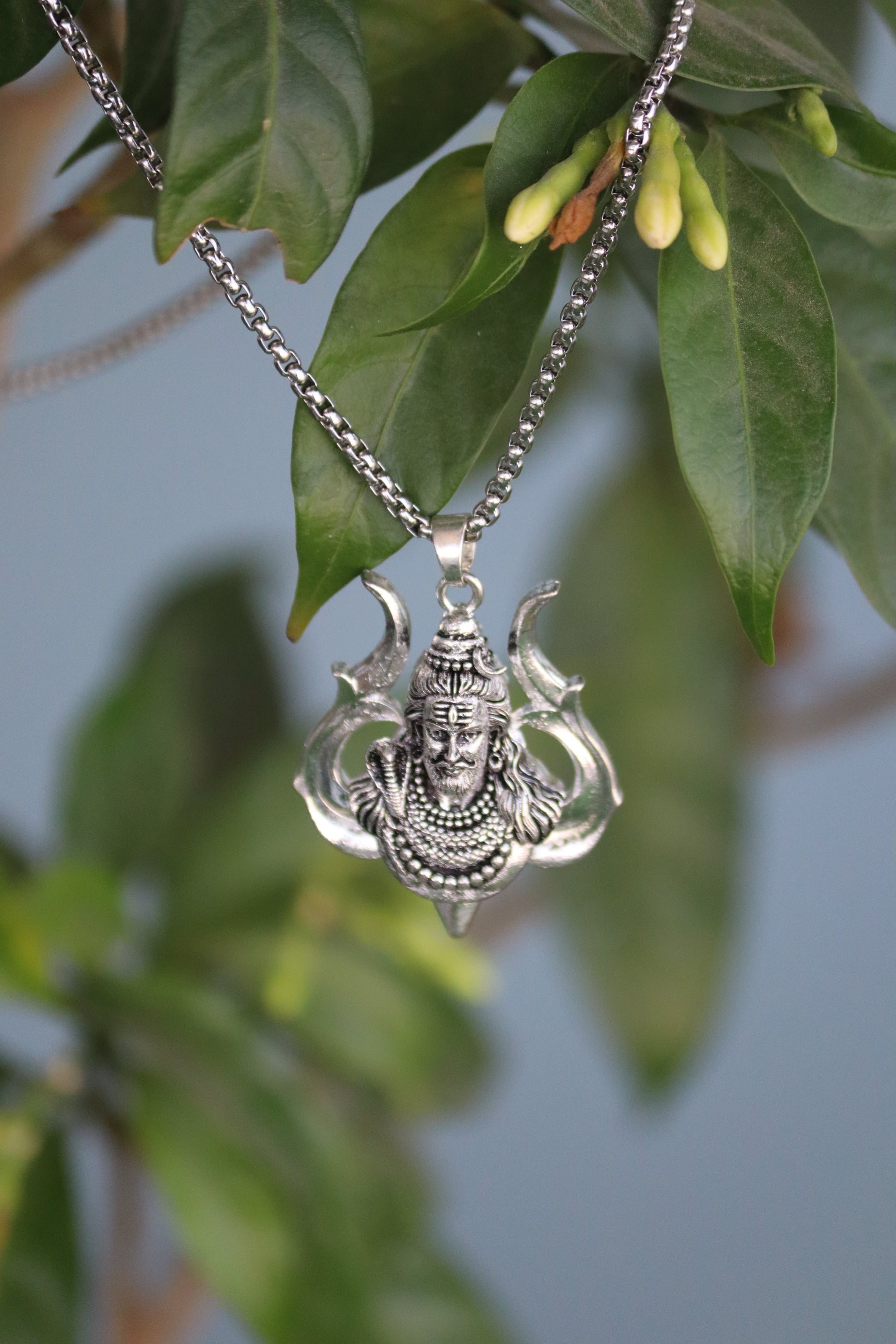 1. Premium silver-finish pendant with detailed Shiva & Trishul design