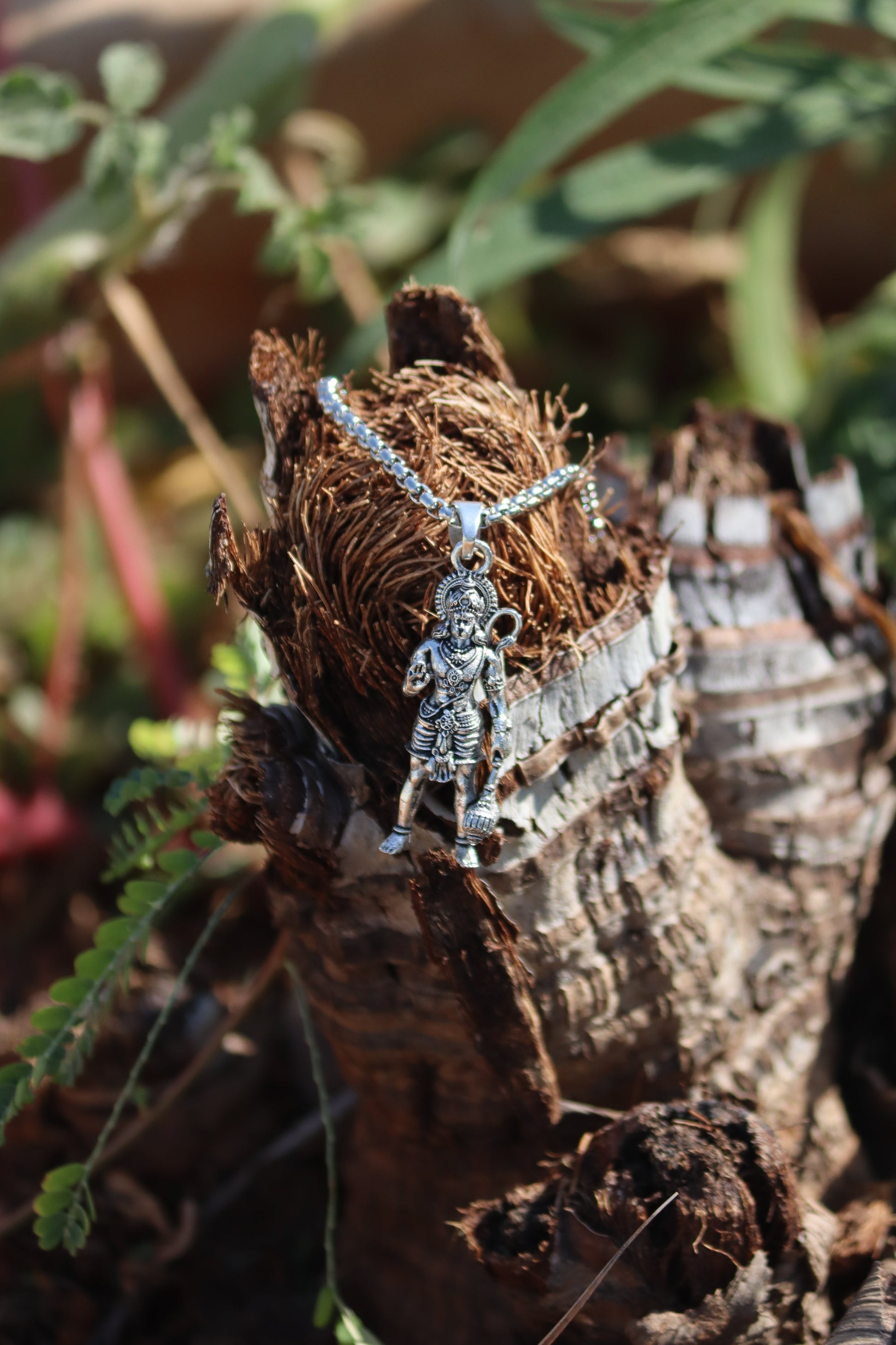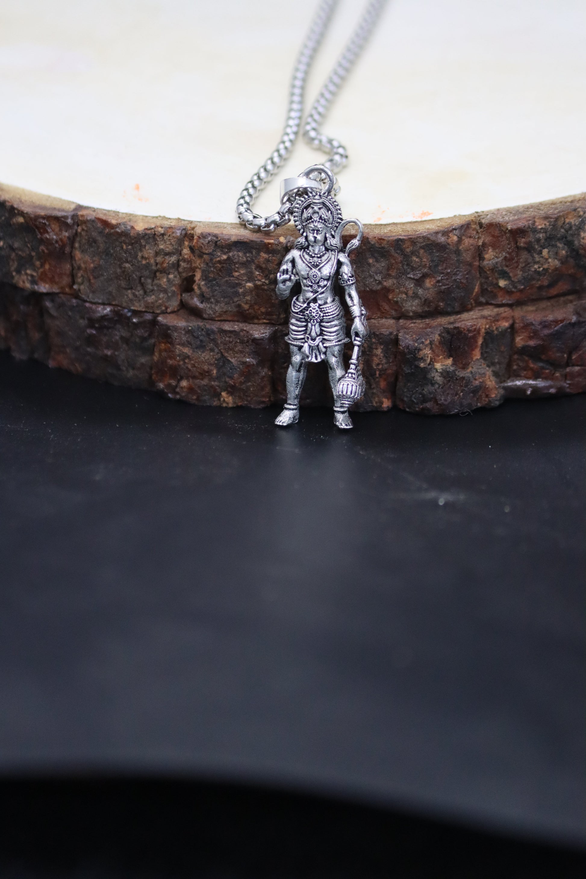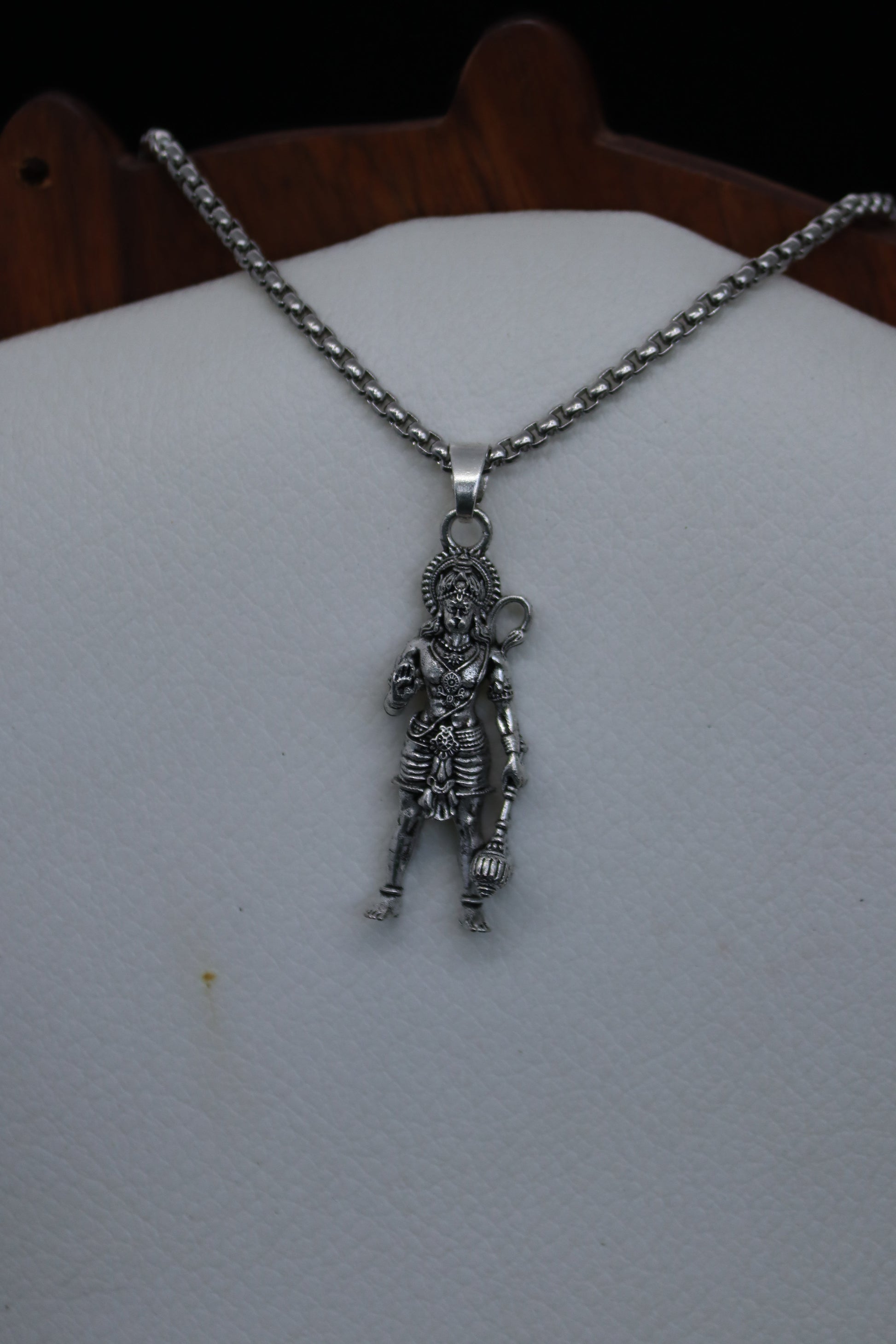 1. Premium silver-finish pendant with detailed Standing Hanuman Ji design